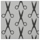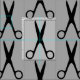 Tesoura preta a estilar o cabelo numa cinza sólida.