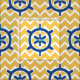 Tecido Monograma e Chevron da roda do navio azul náutico