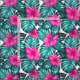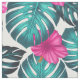 Tecido Monstera Leaves e Hibiscus, Rosa Teal em Branco