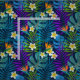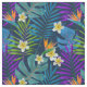 Folhas tropicais coloridas de palmeiras, monstera, flores de plumeria e aves do paraíso sobre fundo azul-marinho. Você pode alterar a cor de fundo clicando no botão "Personalizar!". Por favor, anote! Aqui você também pode mudar o tamanho do azulejo para ajustar o tamanho de um desenho necessário.