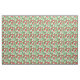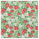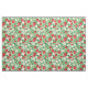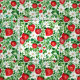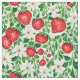 Este tecido apresenta morangos vermelhos, flores brancas e folhas verdes.
