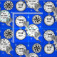 Tecido Moscas-do-tempo - Pássaros e Relógios - Azul brilh