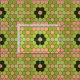 Bonito tecido por quintal com intricado padrão mosaico em tons de verde-musgo e cor-de-rosa-pêssego.