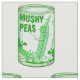 Uma ilustração de uma lata de estanho de ervilhas cogumelo. Estas ervilhas amassadas são uma comida inglesa deliciosa. Esta design tem uma cápsula de ervilhas de desenho animado pisando em algumas ervilhas, movendo-as. Um design de legumes engraçado que faz parte da minha coleção de comidas enlatadas/em lata.