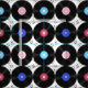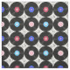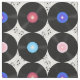 Retrorna discos de vinil musicais dos anos 80 com notas musicais.