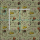 Natureza tematizada de tecido verde khaki claro com botas para caminhada, óculos escuros e ramificações
