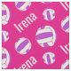 O esporte personalizou o netball com um tecido design de esporte com padrão de stripe roxo. Netbolas brancas e roxas e cor de fundo rosa podem ser alteradas, se necessário. Ideal para jogadores de netball, treinadores e fãs de netball. Personalize com sua própria escolha de nome, lendo atualmente Irena. Arte gráfica e projetada por Sarah Trett para www.mylittleeden.com