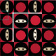 Nossa cara bonito do ninja dos desenhos animados no teste padrão do tabuleiro de damas com pontos vermelhos e quadrados pretos está enfrentando sentidos alternados para trabalhar bem com quase todo o projeto sewing.