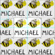 Simplesmente personalize com o seu nome! O tecido apresenta uma ilustração original de um abelhão preto-e-amarelo.