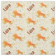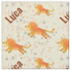 Tecido personalizado com estampa de leão de desenho animado com fundo pontilhado claro para crianças. Faça um presente especial, peça de roupa ou item decorativo para uma criança, menino ou menina, que ama animais selvagens, especialmente leões. Personalize substituindo o nome da amostra pelo que você deseja ver no tecido. Fundo claro com tons terrosos suaves de laranja, amarelo e marrom.