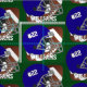 Futebol com capacete de futebol azul escuro e guarda facial de cinza. Padrão de desvio. Número branco personalizável no capacete e no nome. Fundo verde. As cores de número, nome e plano de fundo podem ser alteradas após clicar no botão Personalizar.
