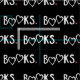 Um tecido modelado para o leitor ávido, com os LIVROS escritos no branco no preto, com corações para o e corações cor-de-rosa bonitos como períodos.
