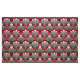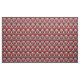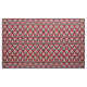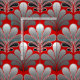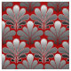 Tecido em um teste padrão do papel de parede do art deco do vintage baseado em um escudo estilizado do mar em um inclinação de seda da prata clara às cinzas/cinza escuros da grafite em um fundo vermelho chinês profundo