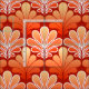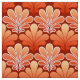Tecido em um teste padrão do papel de parede do art deco do vintage baseado em um escudo estilizado do mar em um inclinação de seda do pastel à laranja média em um fundo profundo da tanjerina, acentuado com branco