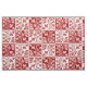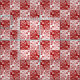Este design telhado original do tecido tem um teste padrão de repetição e alterno do bloco quadrado/tabuleiro de damas enchido com as silhuetas da flor vermelha e branca. As flores bonito, telhadas têm os espinhos e assemelham-se a rosas selvagens ingleses, contudo as cores e o design do teste padrão fazem-no olhar um tanto o Victorian do vintage/arte Nouveau oriental. Este é um tecido floral muito corajoso e fará uma adição original, atraente a sua decoração home e projetos do artesanato.
