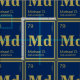 Um tecido original que caracteriza seu nome dentro de uma mesa periódica do marinho e do ouro da caixa dos elementos.