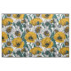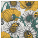 Padrão de vetor sem costura feito com margaridas desenhadas à mão, papoilas e preguiças. Versão amarela e branca.