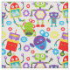 Um tecido brilhante e colorido de design de robôs de desenho animado. Os robôs são projetados bastante grandes para torná-los perfeitos para colchar - seriam um excelente a um espião ou uma colcha de retalhos.