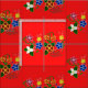 Tecido Ojibwe Floral Design com Fundo Vermelho
