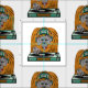 Um orangotão engraçado, este macaco é um D.J., música fazer em um toca-discos girável.