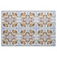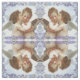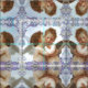 Os anjos beijam primeiramente o teste padrão do tecido que caracteriza dois querubins pequenos.