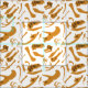 Dourado e branco, os ossos do dinossauro se repetem! Os dinossauros apresentados nesta design incluem: Tyrannosaurus Rex, Allosaurus, Parasaurolophus, Tricerátops, Brachiosaurus, Spinossauro e Velociraptor.