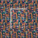 Tecido Ouro Apricot Doodle vintage marinho