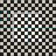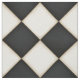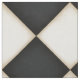 Um padrão de diamantes em preto e branco com sombreado aflita e um sentimento de safra. Nesta escala, cada diamante é aproximadamente 3 1/5" x 3 1/5"