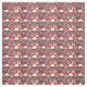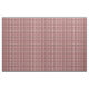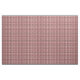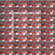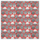 Este tecido tem um design geométrico de ovais com diferentes padrões em cinzas em cada metade, num campo vermelho.