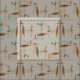 Esferas modernas, ovals e linhas do meio século em uma luz - fundo marrom. Meio século clássico que cruza linhas e teste padrão de estrela.