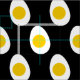 Uma simples ilustração vetorial de um ovo frito em amarelo e branco em preto. Um padrão de bolinhas divertido.
