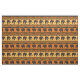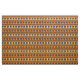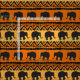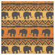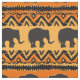 Aqui está um tecido único que apresenta elefantes de silhueta em um design motif africano. Os elefantes negros atravessam campos de laranja brilhante e ouro, com símbolos geométricos tribais complementando o design.
