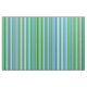 Este design apresenta um padrão de listras bege, azuis e verdes.