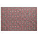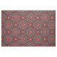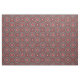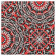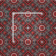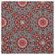 Design de tecido vibrante com um padrão sem soldadura feito de formas e linhas vermelhas e brancas em um fundo preto.