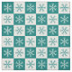 Tecido Padrão Checkered Snowflake Branco Teal