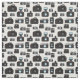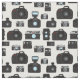 Tecido funky impresso com câmaras retrógradas desenhadas à mão e câmaras brancas e pretas modernas