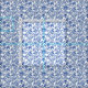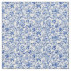 Um padrão gracioso, azul e branco, que mostra flores florescentes e ramos fluidos, semelhantes a videira, renderizado em um estilo rebuscado de gravura.
