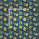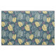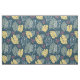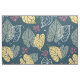 Padrão de folhas tropicais estilizadas verde-sábado e amarelo. Acentos cor-de-rosa e brancos.