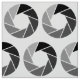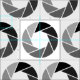 Um padrão composto por símbolos de abertura da lente da câmera. O design pode ser mais personalizado e os motivos podem ser organizados de várias maneiras.