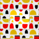 Um padrão de abstrato sem costura original, constituído por formas semivais e semicrocirculares, desenhadas à mão, em negrito, em vermelho, âmbar e preto sobre fundo branco/transparente. Este design de padrão usa uma imagem grande de azulejo de padrão de alta resolução permitindo que o padrão seja maior ou menor.
