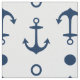 O tecido personalizado apresenta uma âncora náutica de barco e um padrão de círculo geométrico em azul marinho. A cor branca de fundo pode ser personalizada.