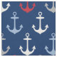 O tecido personalizado apresenta um padrão de âncora náutica do barco em azul-nuvem, vermelho, cinza e branco com cor de fundo marinho azul (pode ser modificado).