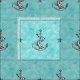 Anchores e estrelas padrão sobre um fundo azul mosqueado com o símbolo Festina Lente de um golfinho em movimento rápido envolto em uma âncora. O ditado é do tempo romano, o que se traduz em "Torne Mais Viva, Lentamente". Tome seu tempo e faça o certo.
