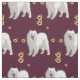 https://www.spoonflower.com/designs/10594362-sammy na prateleira padrão-by-design_by_lee_. Um padrão samoiado para torres, mantas... O ouro do aniversário toca em burgundy com Sammies felizes. DesignsbyLee