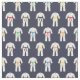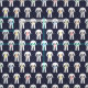Tecido azul escuro com filas de fatos de karatê brancos, com seus cintos coloridos. Perfeito para quem gosta de caratê e artes marciais.