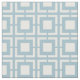 Este fabuloso tecido inspirado no meio século apresenta um padrão de bloqueio quadrado branco num fundo azul claro.