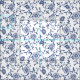 Tecido de flores e espirais florais, azuis e brancas, estilo Hamptons, marinho