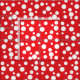 Uma mistura de pontos brancos grandes e pequenos em fundo vermelho.
