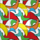 Tecido Padrão de Boomerang Retroativo Multicolor