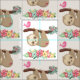 Tecido padrão com uma ilustração de uma preguiça marrom fofinha pendurada de cabeça para baixo. Esta pequena cara engraçada está segurando um galho que tem um pássaro rosa em um lado do galho e um buquê de rosa ao estilo rabisco do outro lado. Abaixo deles está um arranjo de flores coloridas desenhadas à mão. Esta preguiça adorável também tem bochechas rosadas rosa e 3 corações bonitinhos no seu bumbum. Cor de fundo amarelo-claro. Faria pijamas adoráveis ou outras roupas confortáveis para olhar ao redor.